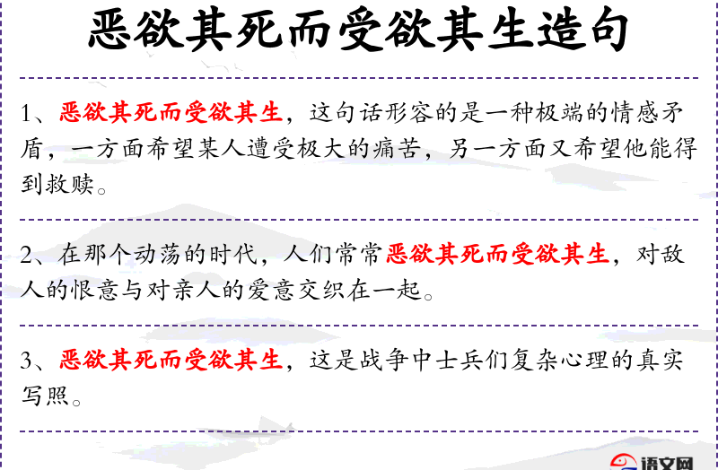 句子:“恶欲其死而受欲其生,这句话形容的是一种极端的情感矛盾,一方面希望某人遭受极大的痛苦,另一方面又希望他能得到救赎。”