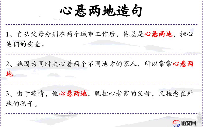 - 英文:使用了“torn between”来表达“心悬两地”的概念,强调了内心的冲突。