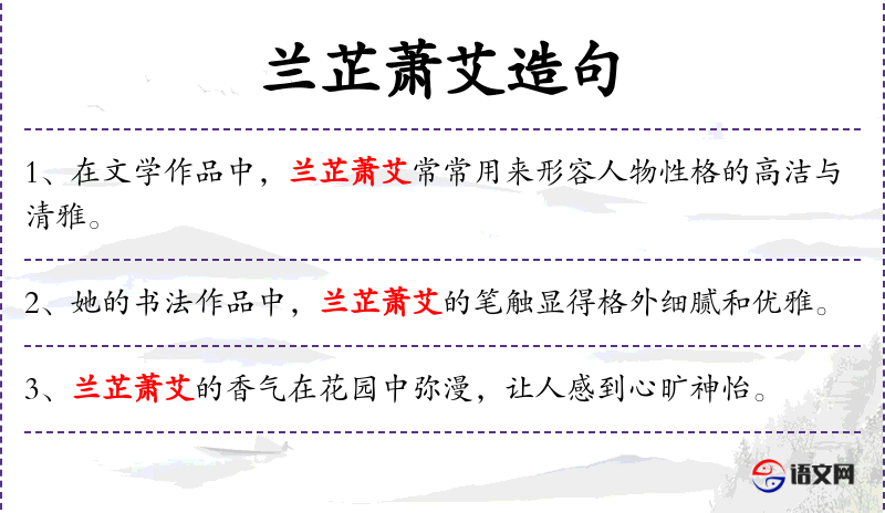 - 兰、芷、萧、艾在**文化中常被用来比喻高洁、清雅的品质。