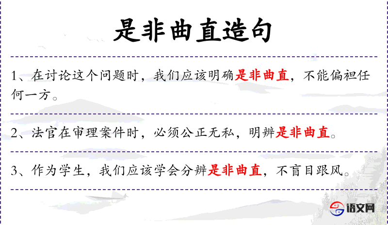 1. 【是非曲直】 - 正确还是不正确,有理还是无理。