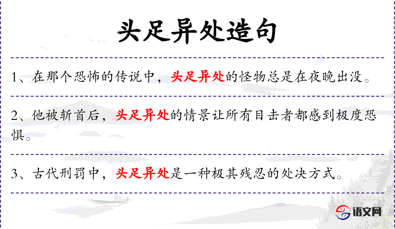 - 头足异处:指被处决者的头部和四肢被分开,是一种残酷的死刑方式。
