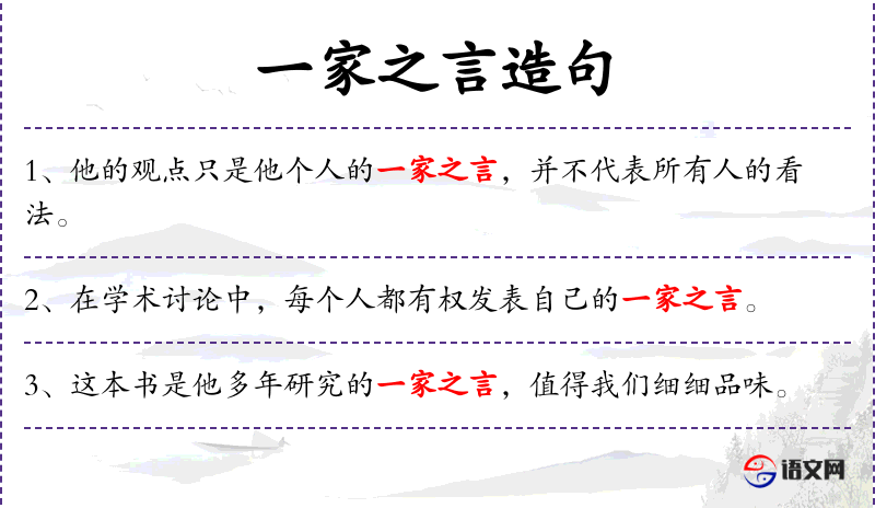 1. 【一家之言】 指有独特见解自成体系的论著。