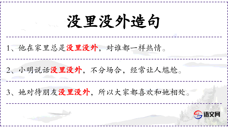 3. 【没里没外】 - 里外不分,指说话做事不分场合。