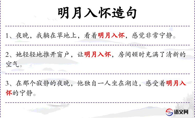 - 明月入怀:形容月亮非常明亮,仿佛可以抱在怀里,是一种诗意的表达。
