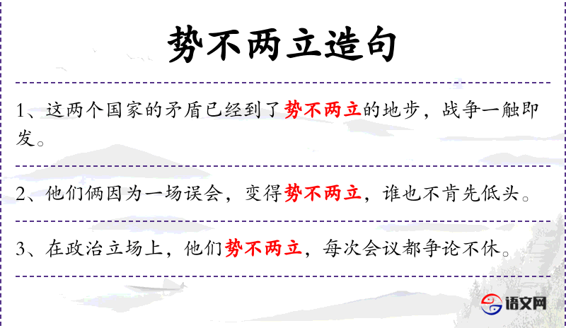 句子:“这两个国家的矛盾已经到了势不两立的地步,战争一触即发。”