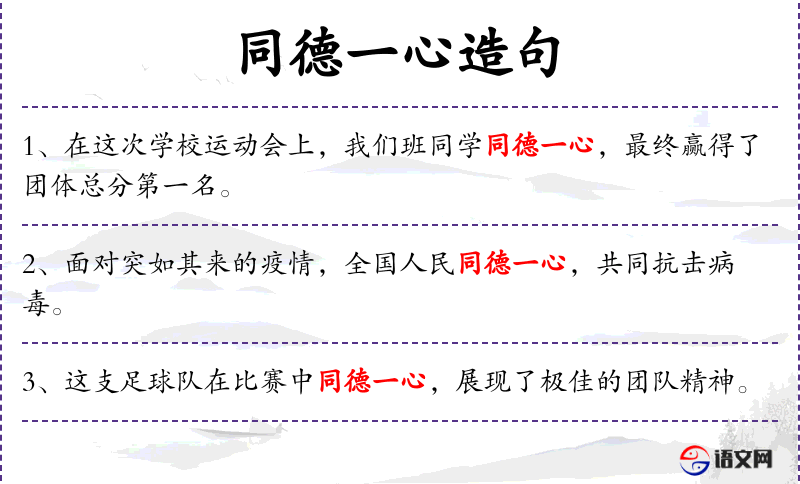 - 使用“同德一心”这样的成语增加了句子的文化内涵和表达的深度。
