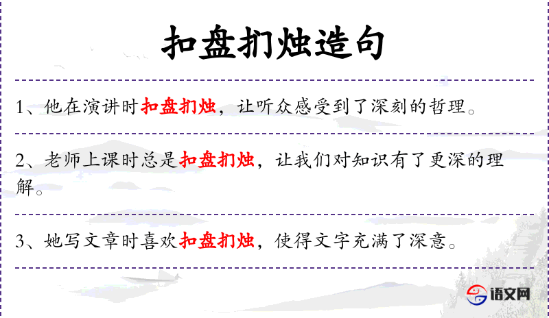 - 扣盘扪烛:这两个词组可能源自*古代的文化俗,比喻深入探讨和细致思考。