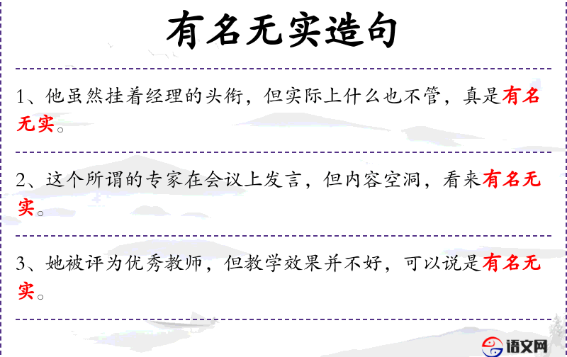 4. 【有名无实】 光有空名,实际上并不是那样。
