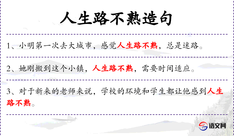 句子:“刚转学到新学校的学生,面对新的课程和同学,会感到人生路不熟。”
