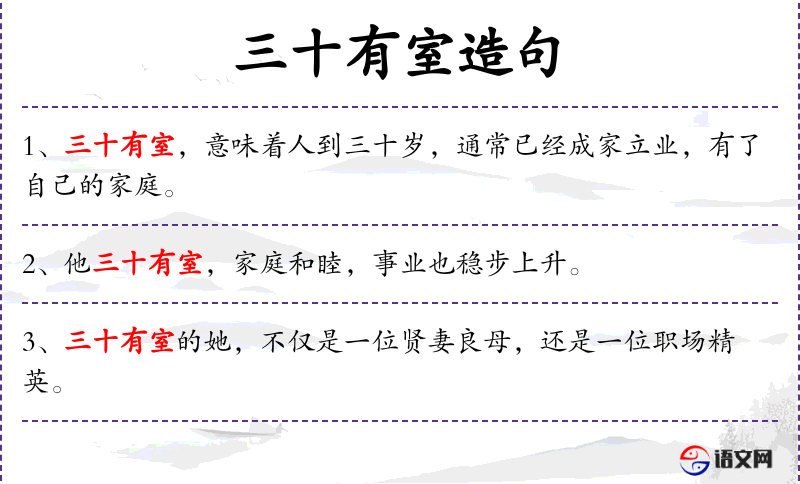 1. 【三十有室】 - 谓男子三十岁娶妻。