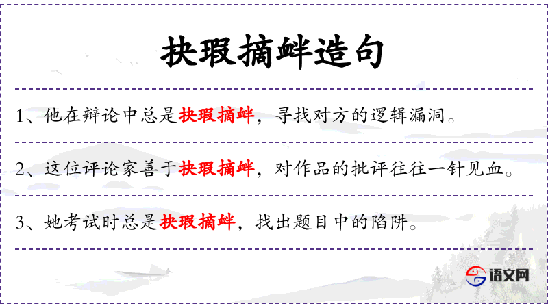 - 抉瑕摘衅:这个成语源自**传统文化,强调批评的准确性和针对性。