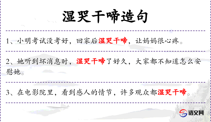 2. 【湿哭干啼】 - 湿哭:有眼泪地啼哭;干啼:没有眼泪地啼哭。形容哭哭啼啼的样子。也泛指因苦楚而呈现出的各种表情。