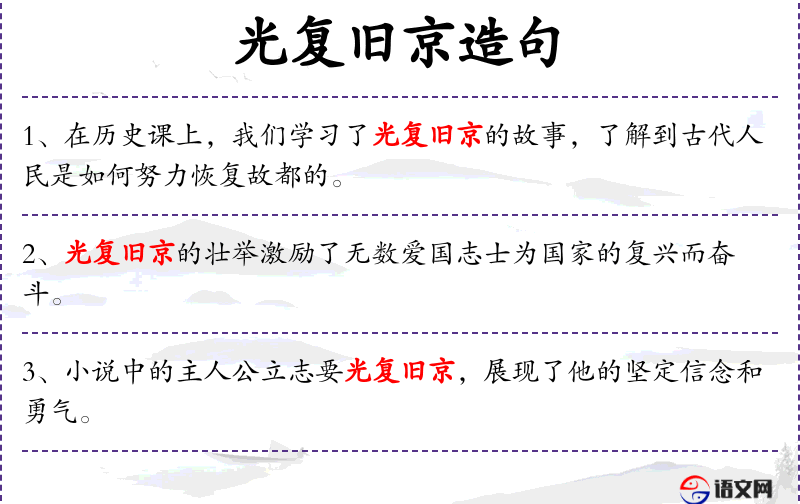 “光复旧京”可能涉及特定的历史或文化象征,如历史上的“光复台湾”或“光复南京”。这些**通常与民族自豪感和历史记忆紧密相关。