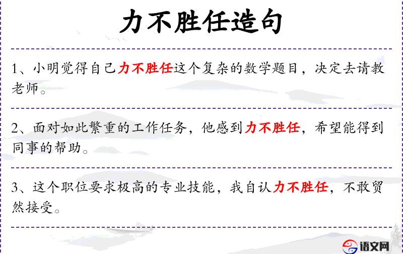 - 力不胜任:成语,表示能力不足以胜任某项工作。