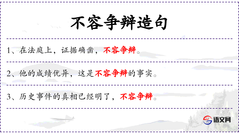 - 不容争辩:成语,意为不容许争论或辩驳。
