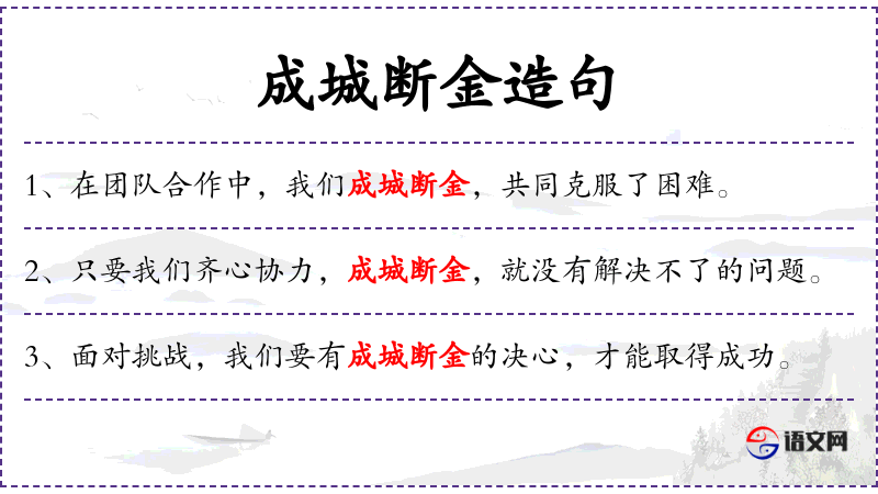 - 成城断金:这个成语源自**古代,强调团结的力量。