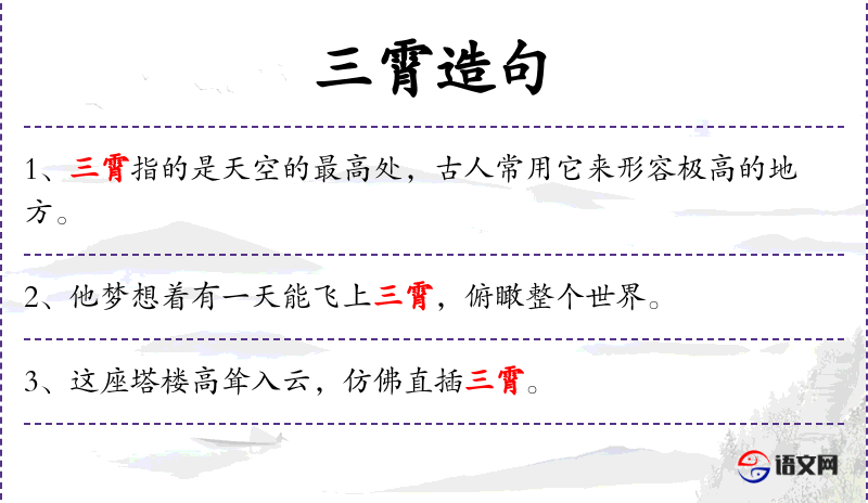 犹三天。道教称清微天﹑禹馀天﹑大赤天为三天; 高空。喻仕途得意,占居高位。