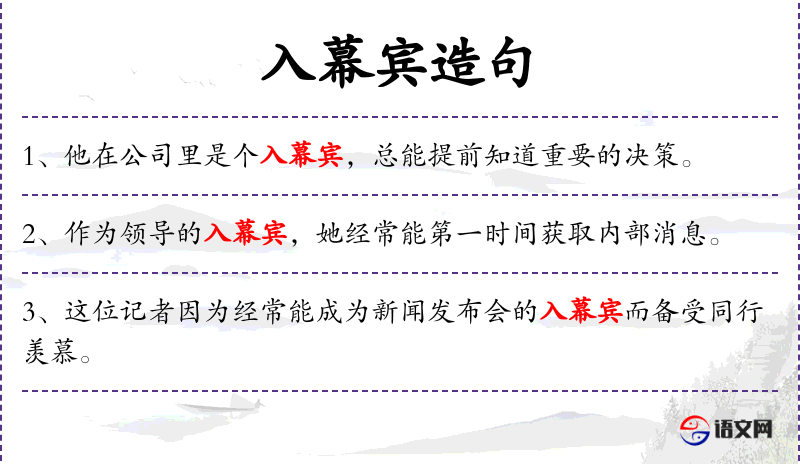- 入幕宾:名词,指进入某个特定圈子并受到欢迎的人。