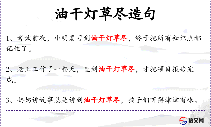 2. 【油干灯草尽】 - 比喻很快就要死亡。
