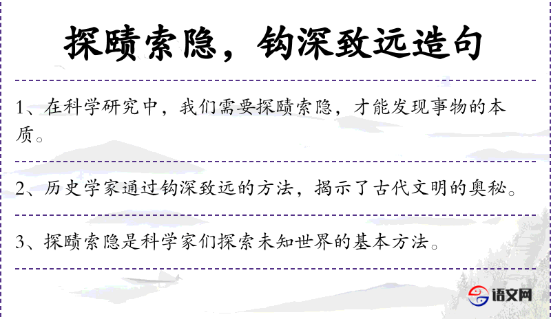 - 探赜索隐:指深入探究事物的奥秘,寻找隐藏的真相。