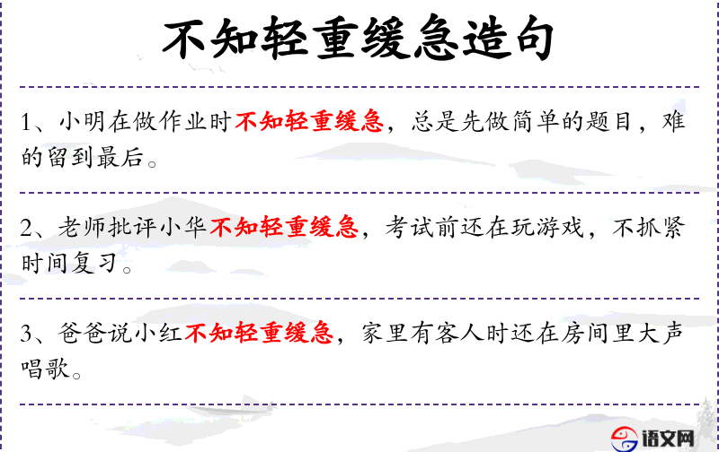 1. 【不知轻重缓急】 指人办事不知事情有主要的、次要的,急办的和可缓办的区别。