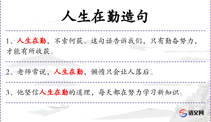这句话强调了勤奋对于人生成功的重要性。在任何情境下,无论是学*、工作还是个人发展,勤奋都是取得成果的必要条件。
