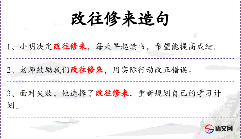 1. 【改往修来】 指改变以往的错误,修治来日的善行。