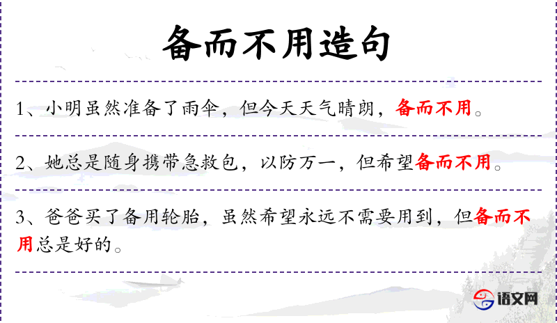 - 备而不用:成语,表示事先准备但最终没有使用。