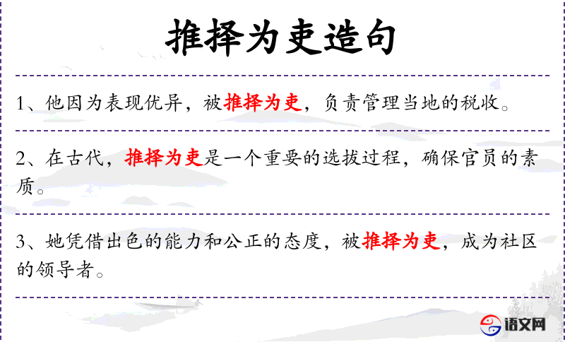 句子:“[推择为吏的过程中,不仅要考察个人的能力,还要看其品德是否高尚。]”