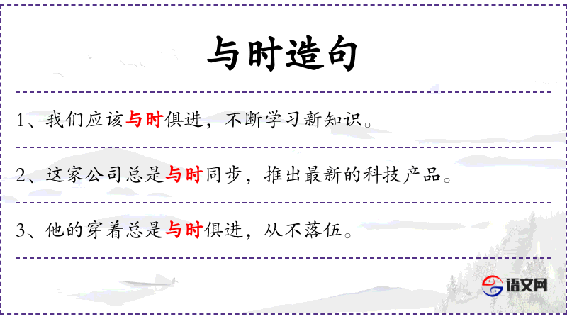 1. 【与时俱进】 - 是指准确把握时代特征,始终站在时代前列和实践前沿,始终坚持解放思想、实事求是和开拓进取,在大胆探索中继承和发展。