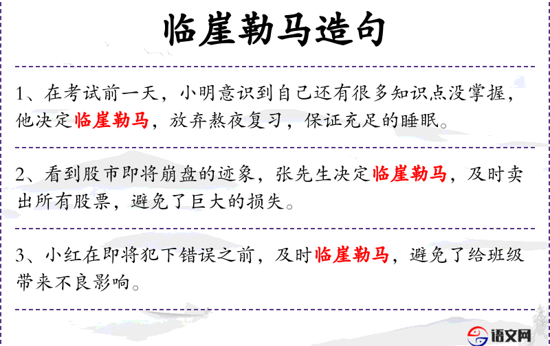 - 临崖勒马:a metaphor meaning to stop before it's too late