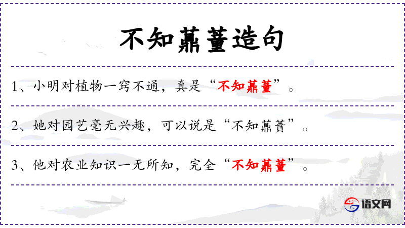 句子:“他对园艺的了解几乎为零,可以说是“不知薡蕫”。”