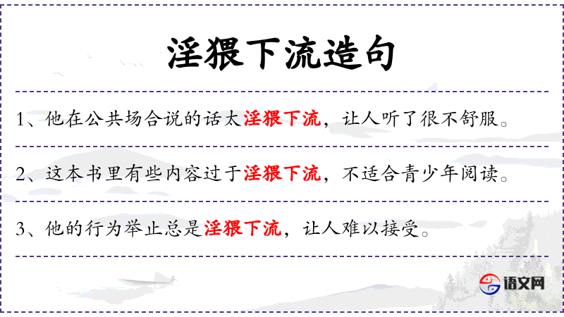 6. 【淫猥下流】 - 放荡淫乱,指人纵欲乱为。