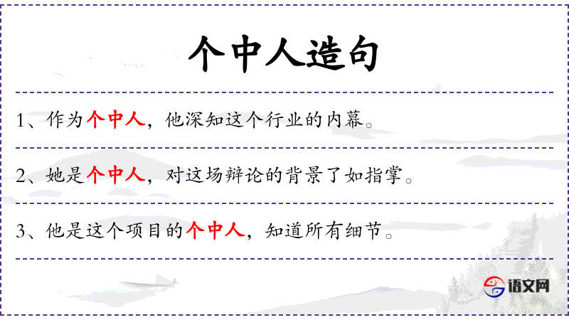 - 作为个中人:表示说话者或某人是某个行业或领域的内部人士,了解其中的细节和秘密。