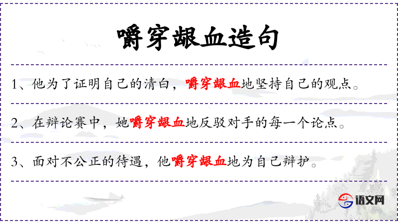句子:“面对不公正的待遇,他嚼穿龈血地为自己辩护。”