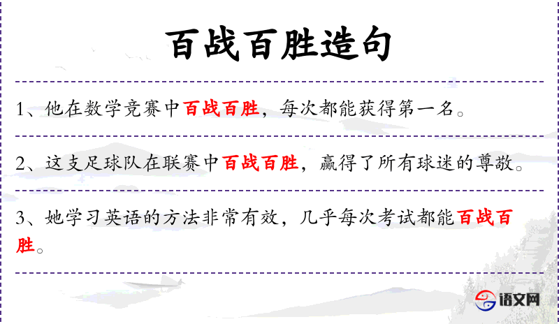 2. 【百战百胜】 - 每战必胜。形容所向无敌。