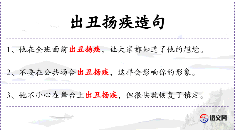 - 出丑扬疾:在比赛中表现不佳,引起他人注意。