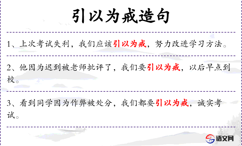 - 引以为戒:成语,指从别人的错误或失败中吸取教训,避免自己犯同样的错误。