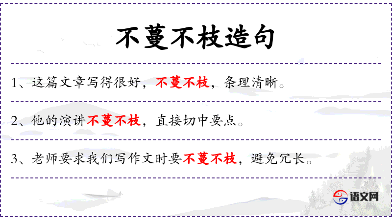 - 不蔓不枝:比喻文章或言辞简洁,没有冗余的部分。