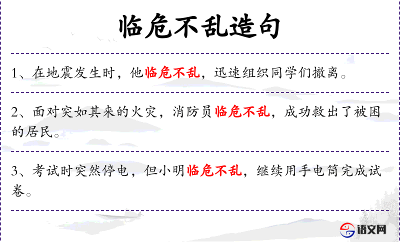 - 临危不乱:形容在危险或紧急情况下保持冷静,不慌乱。