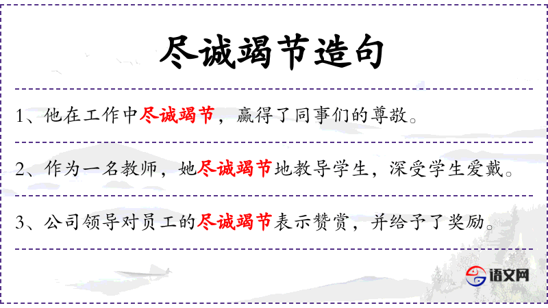 - 尽诚竭节:形容非常尽心尽力,忠诚尽责。