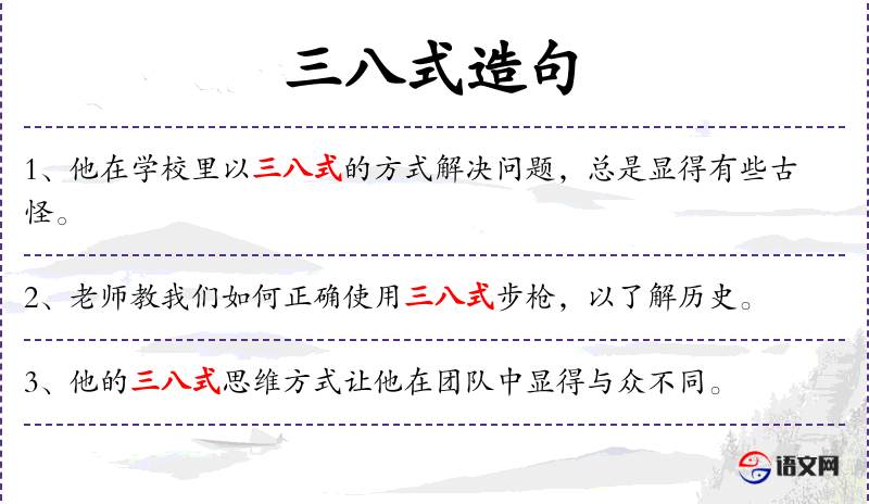 1. 【三八式】 - 指日本造"三八式"步枪; 指抗日战争时期参加革命的干部。