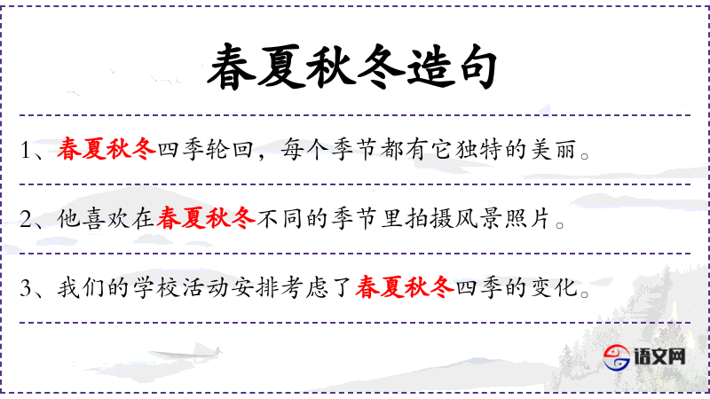 - 状语:“春夏秋冬”