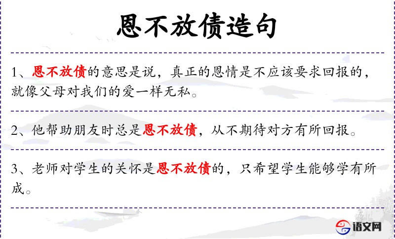 句子:“老师对学生的关怀是恩不放债的,只希望学生能够学有所成。”