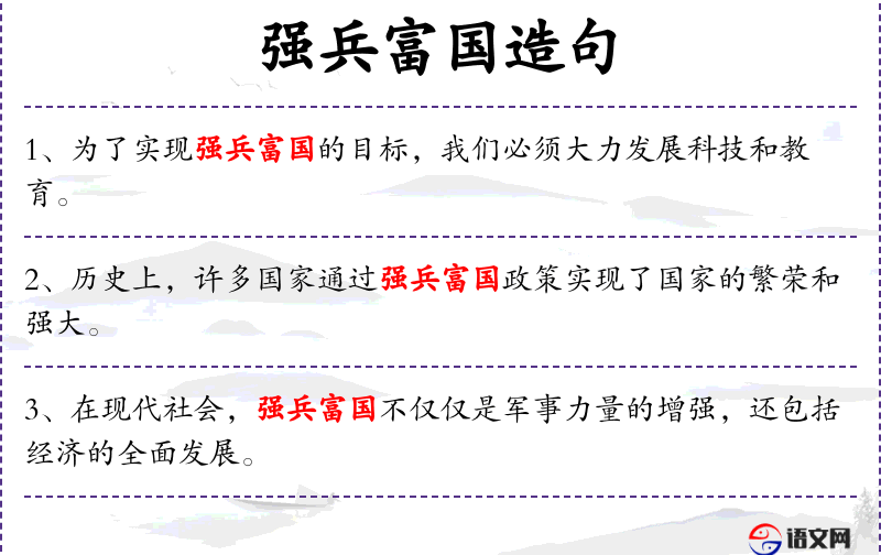 - 强兵富国:指通过增强军事力量和经济实力来使国家强大。