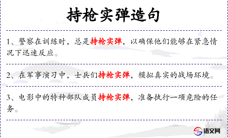 - 持枪实弹:表示士兵们装备的状态,强调其准备就绪。