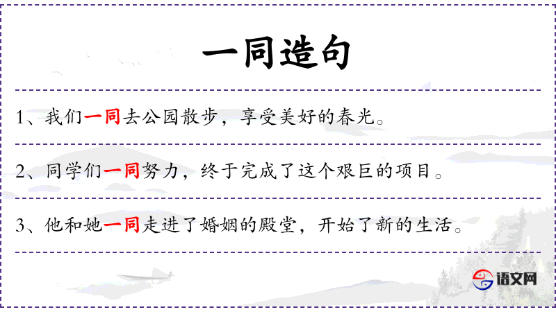 1. 【一同】 - 表示同时同地(做某件事):~出发|~欢度新年。