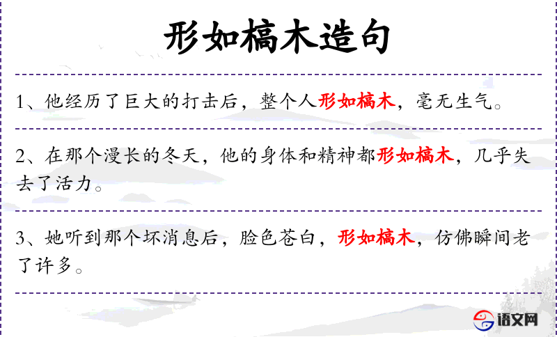 - 形如槁木:成语,形容人因悲伤或绝望而变得毫无生气。