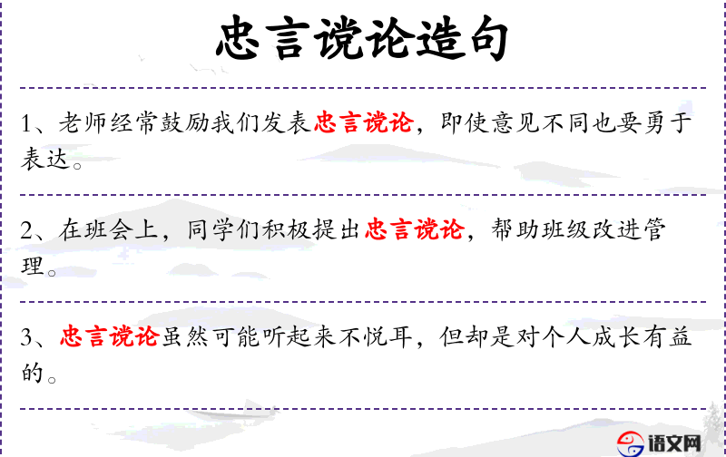 - 主语:“忠言诤论”