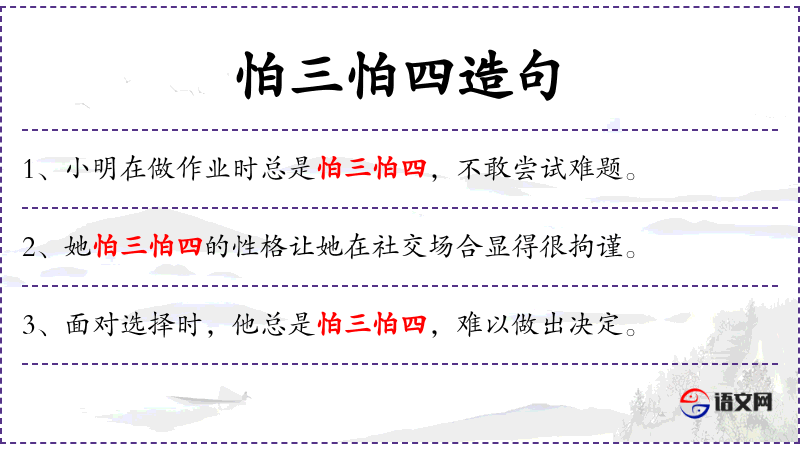 - 怕三怕四:成语,意思是过分担心或害怕,形容人胆小、顾虑多。